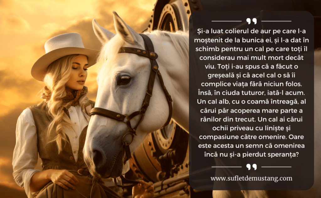 De la calul rănit cum ai fost și tu în momentele umbrite și pline de durere, până la calul viguros care sare cu ușurință peste obstacolele vieții. Tu ești metafora acestei cărți!