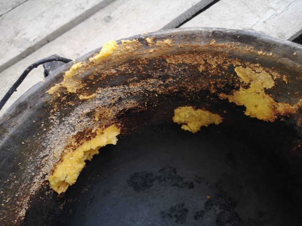 Recomandarea noastră este să nu uitați să culegeți cele mai delicioase bucăți de mămăligă direct de pe ceaun.